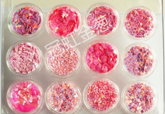 - 金蔥粉產(chǎn)品特性及應(yīng)用領(lǐng)域:冠虹金蔥粉、異形金蔥粉由精亮度極高的電鍍材料經(jīng)精密切割而成,其材質(zhì)有PET、鐳射PET、鋁質(zhì)等材料。而特殊形狀的金蔥粉,如圓形、方形、梅花、星星等異形產(chǎn)品不能通過(guò)簡(jiǎn)單的切割,必須單獨(dú)訂制相應(yīng)形狀的高精密度的磨具進(jìn)行沖壓才能生產(chǎn)相應(yīng)的形狀產(chǎn)品。